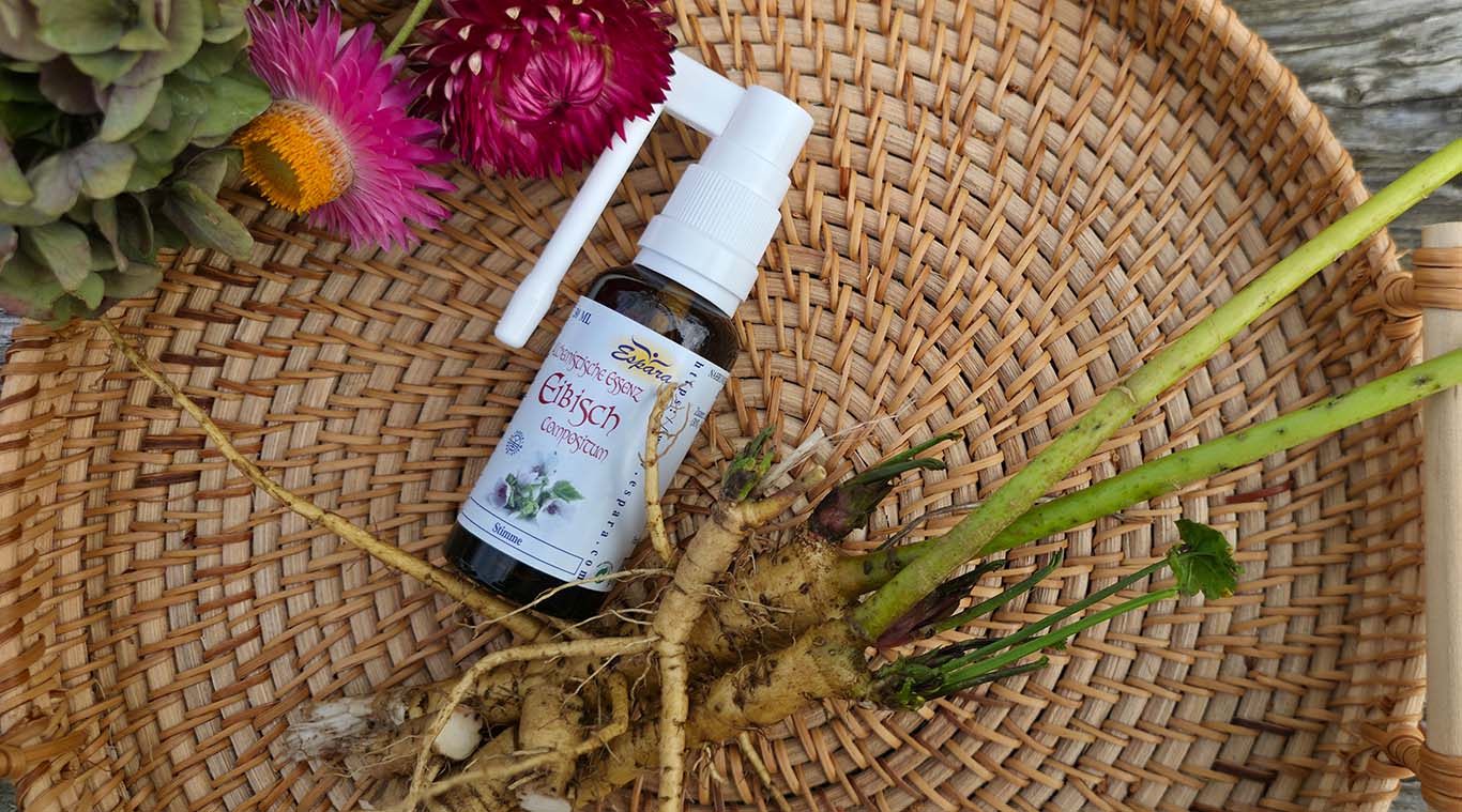 Und in der neuen Eibisch Compositum Essenz von Espara wird die Eibischwurzel auch noch mit anderen starken Heilpflanzen ergänzt. Wie Odermennig, Wegrauke, Isländisch Moos und Salbei.
